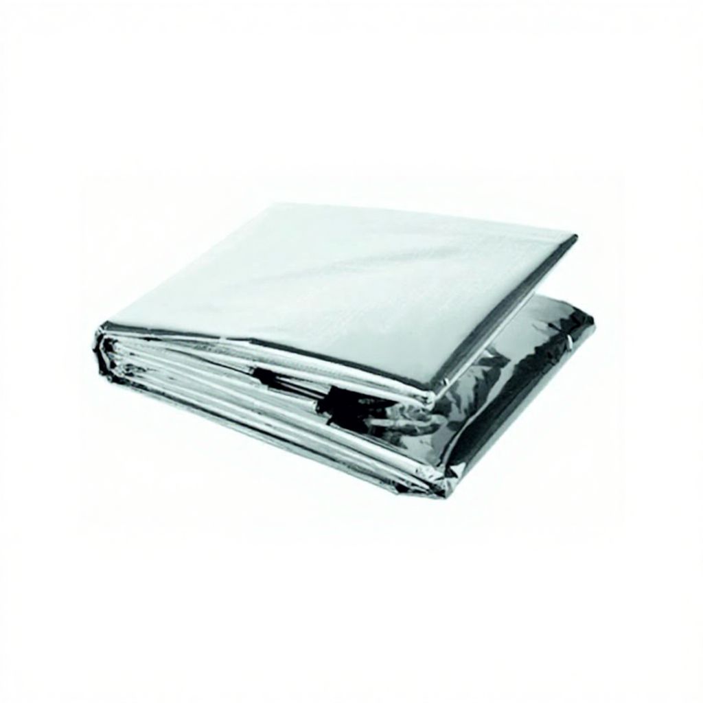 Lightweight, aluminized blanket is thin and flexible, yet reflects 80% of body heat to retain body warmth.
